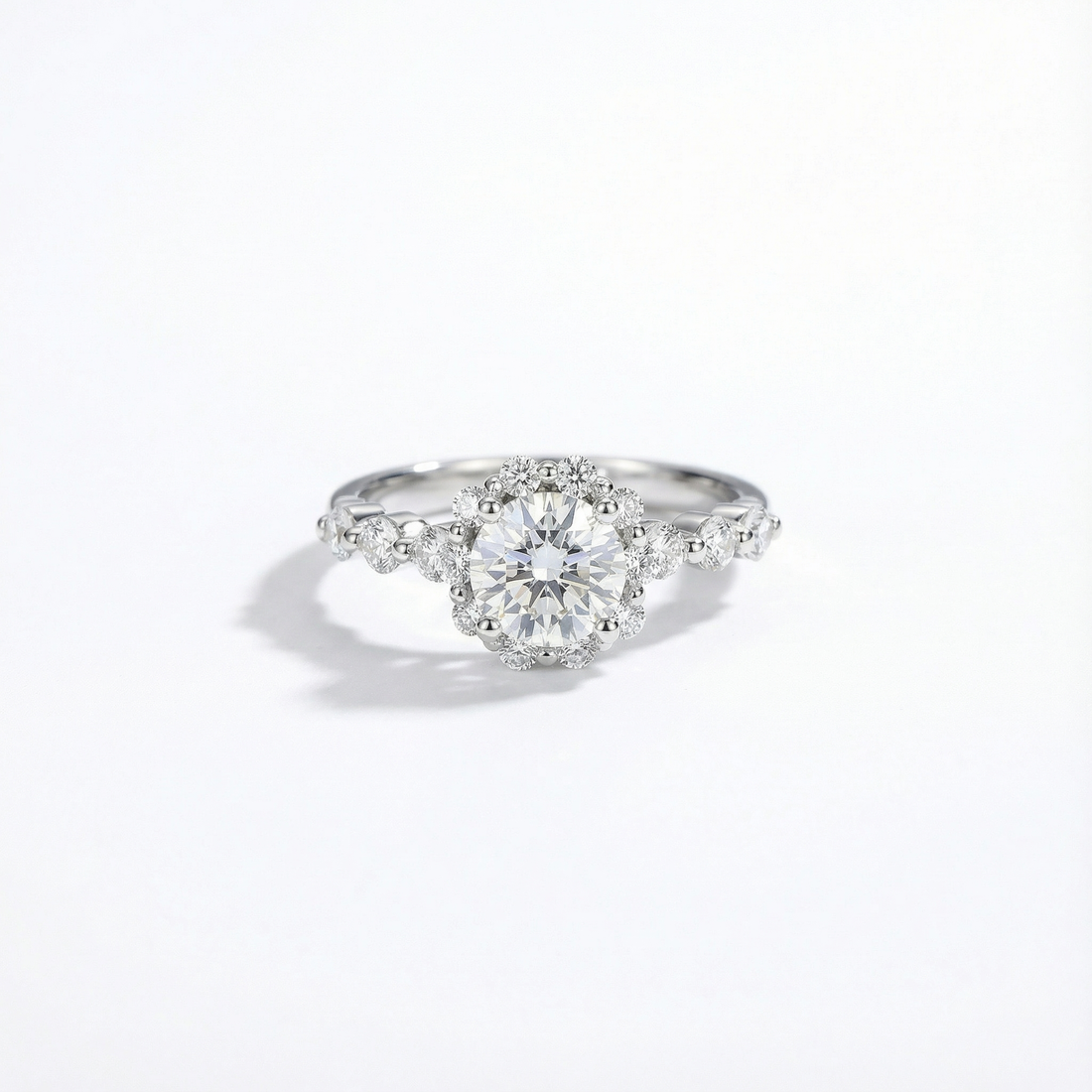 Round Cut Diamond Tri-Tone Pavé Stacked Engagement Ring