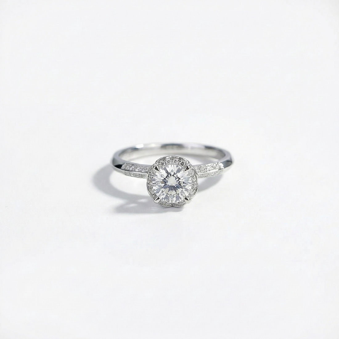Emerald-Cut Diamond Ring with Floral Side Accents