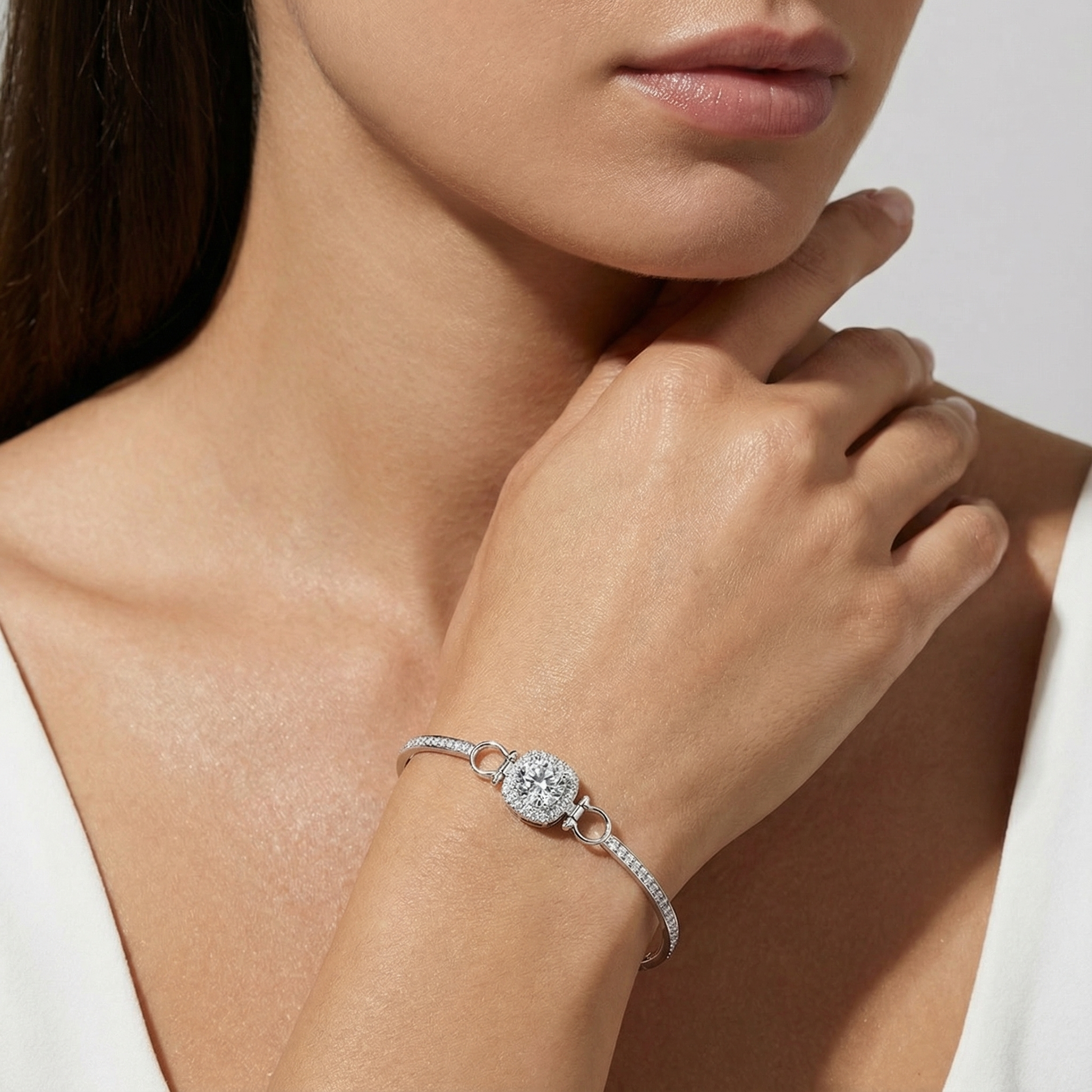 Designed with an adjustable chain for a comfortable fit, the halo centerpiece adds subtle brilliance without overpowering the design. A versatile bracelet that feels refined on its own and effortless when layered, suited for both everyday wear and special occasions.