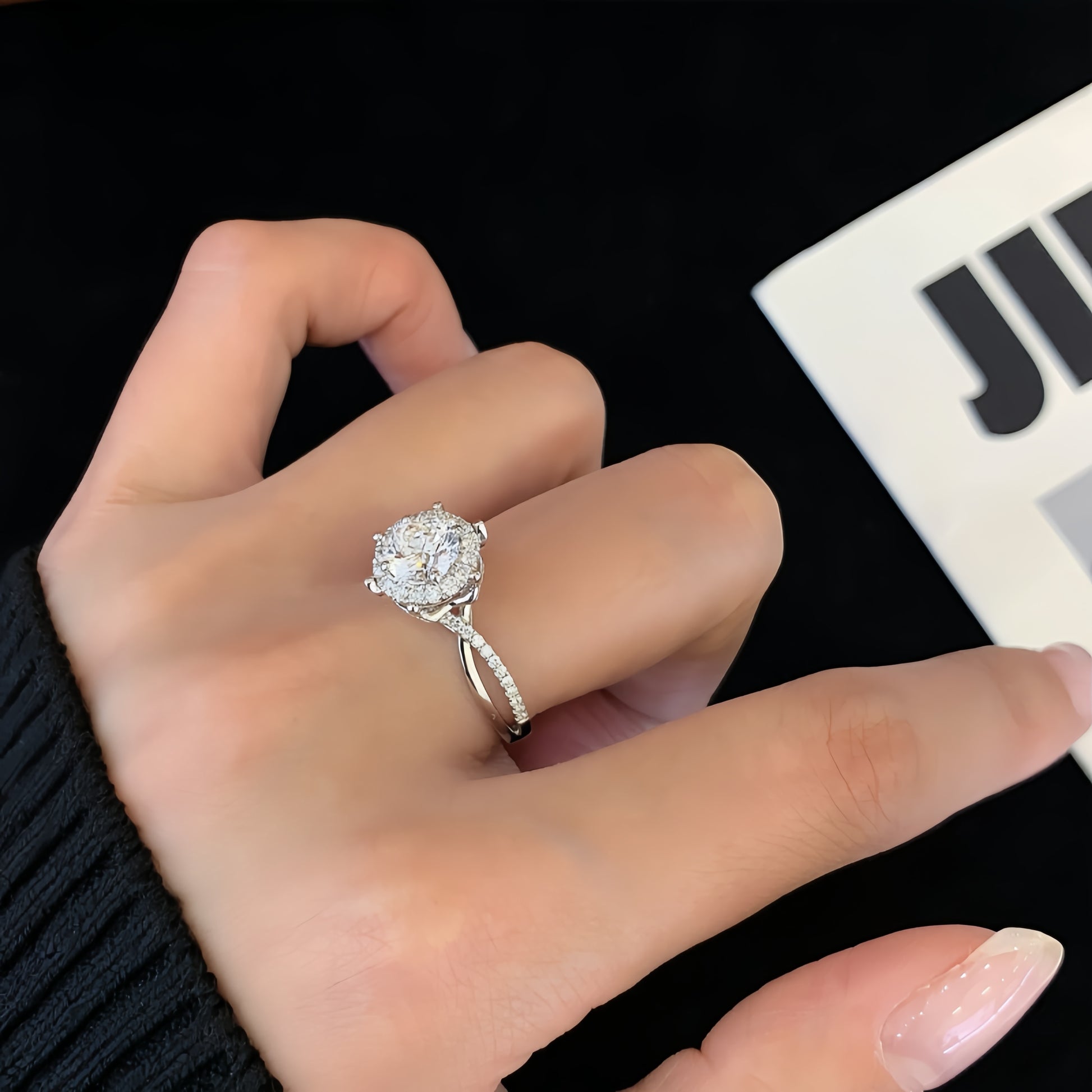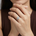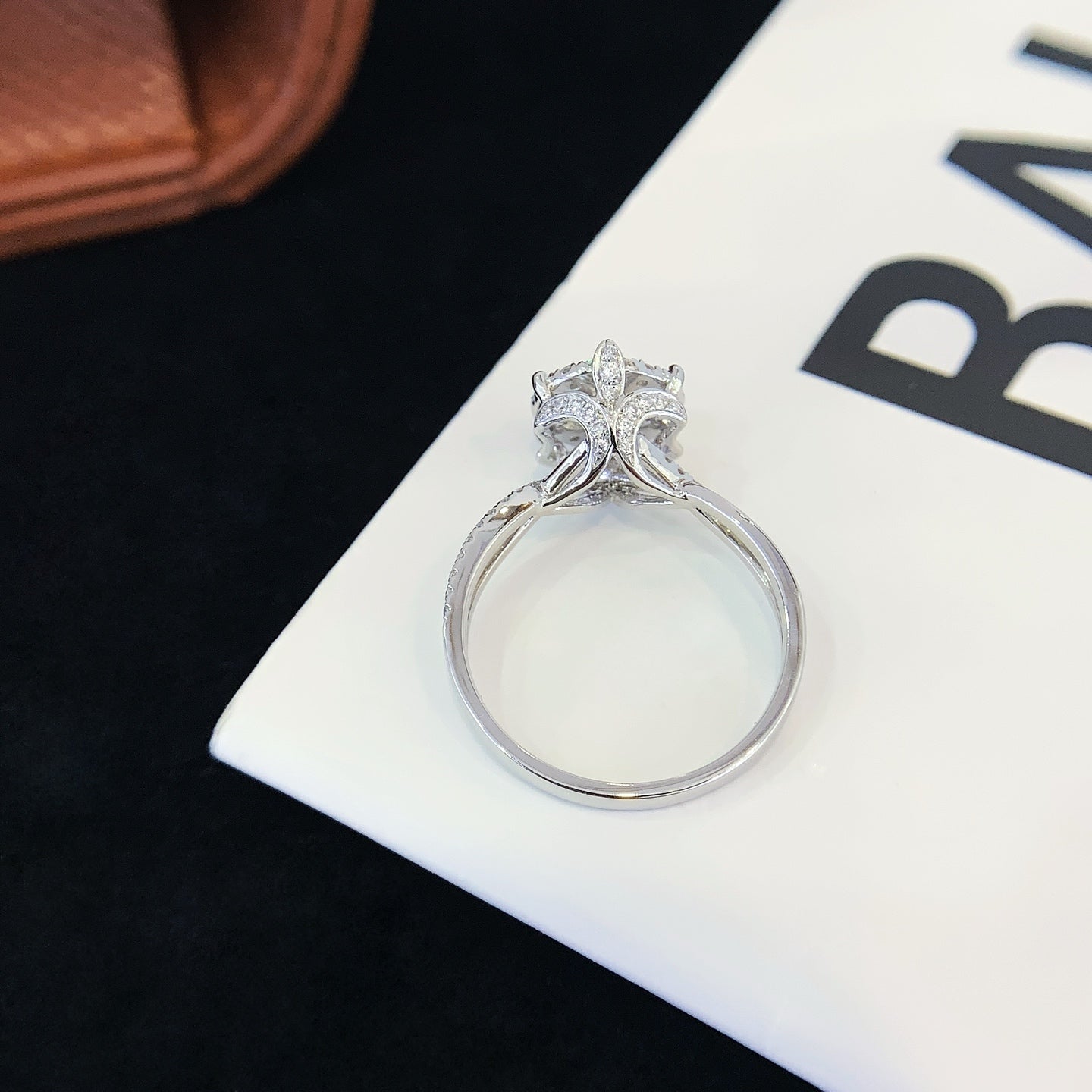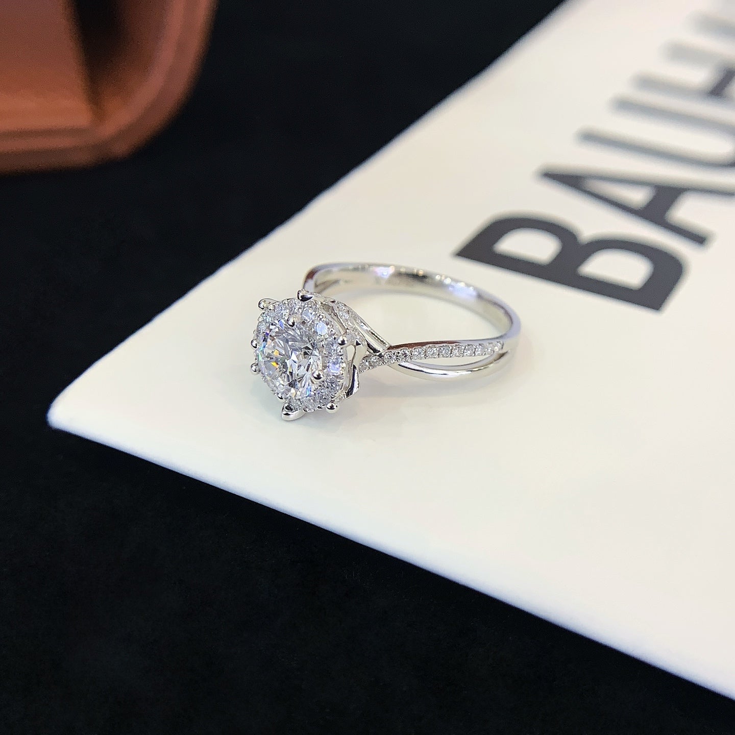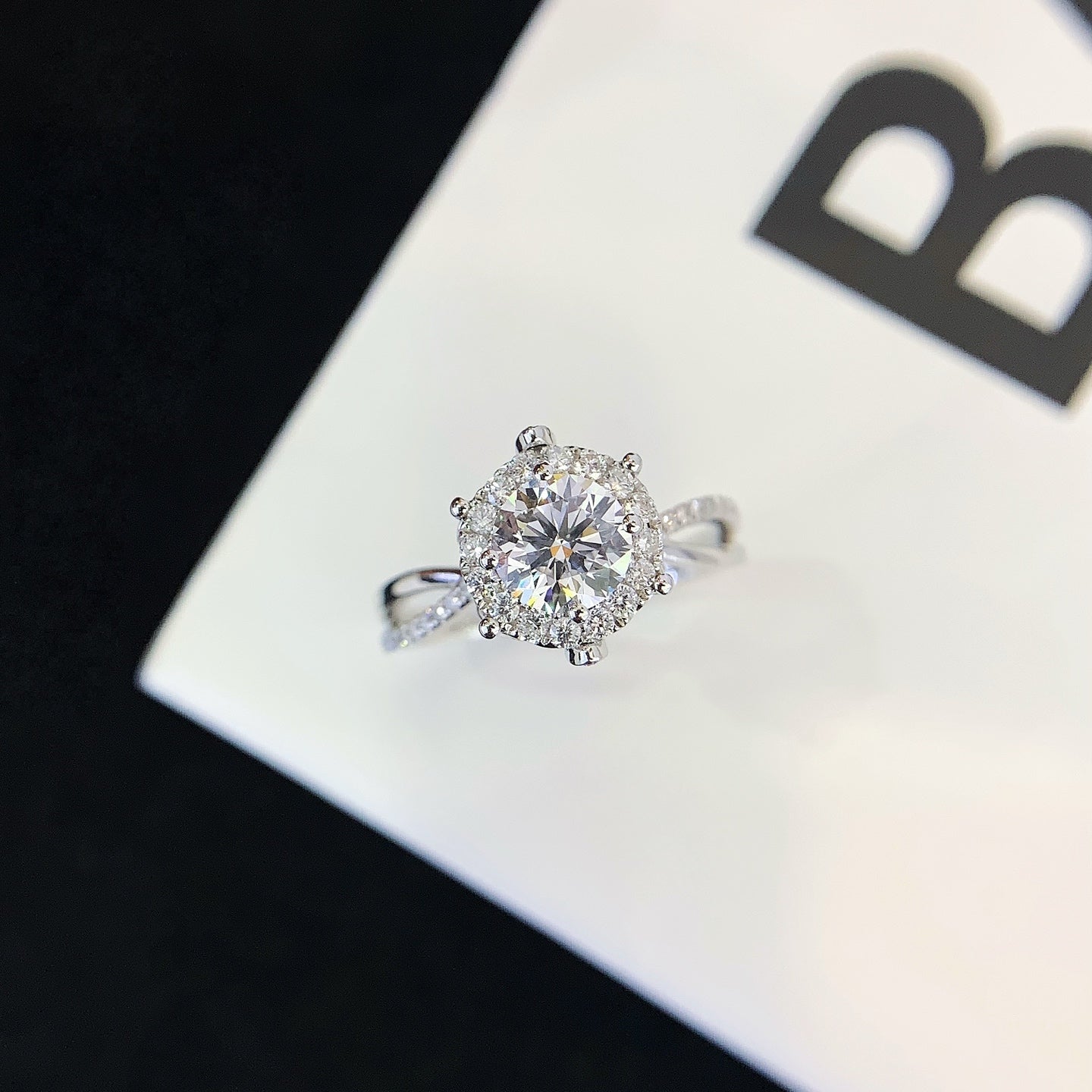 Delicate pavé detailing along the twist brings continuous brilliance, while the intertwined band creates a sense of elegance and harmony. Designed to feel romantic yet structured, this ring blends classic halo brilliance with a modern, sculptural band—ideal for those seeking timeless beauty with a distinctive twist.